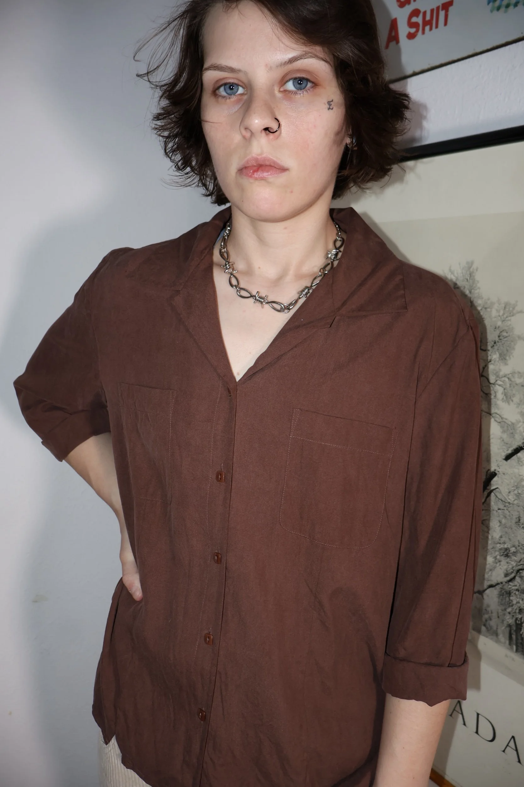 Button ups and blouses Categories: All Tops Vintage tees Tanks Button ups and blouses Dresses By Decades: 50s & 60s By Decades: 70’s By Decades: All About the 80’s By Decades: 90’s era By Decades: Everything Y2K Vintage Denim Jeans Skirts and Shorts Denim Outerwear Costume/Seasonal Misc costume wear Christmas! Vintage Slip Collection Dresses Half slips and Bloomers Re worked Outerwear Trenches Blazers Vintage Sweaters and Cardigans Polyester Pants Handmade Up cycled Jewelry Keychains and belts Necklaces Earrings All / Tops / Button ups and blouses Vintage Brown Silk Button Down Unisex $42.00 Purchase Added!